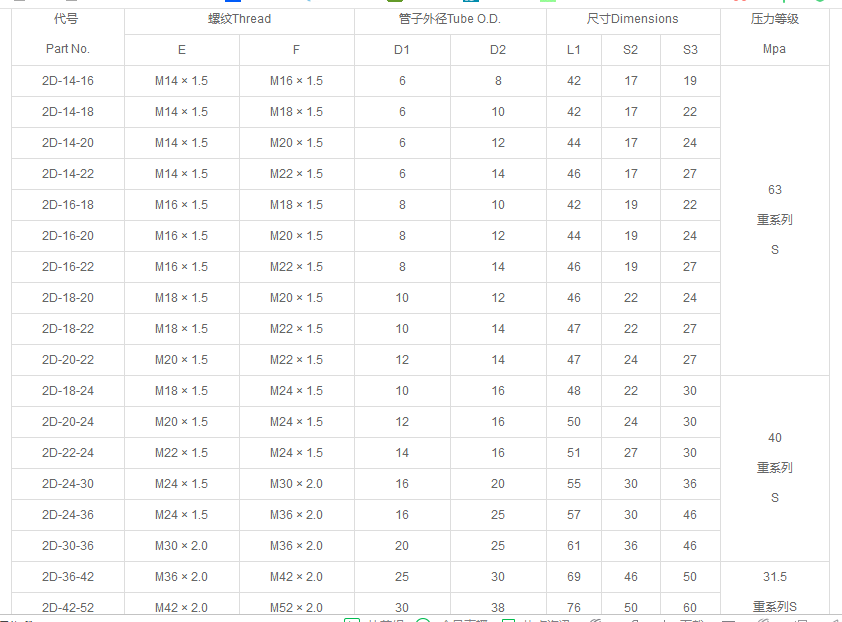 英管內螺紋60°外錐面22611系列